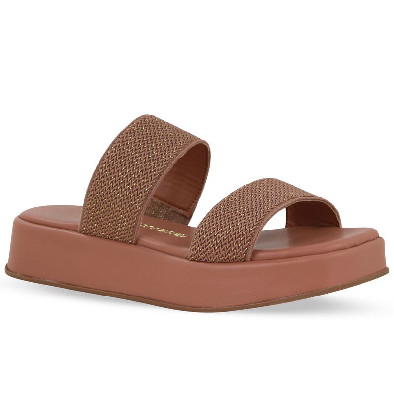 Sandália flatform amêndoa. De solado médio inteiro. Possui tiras em elástico sobre o pé.