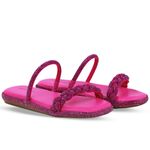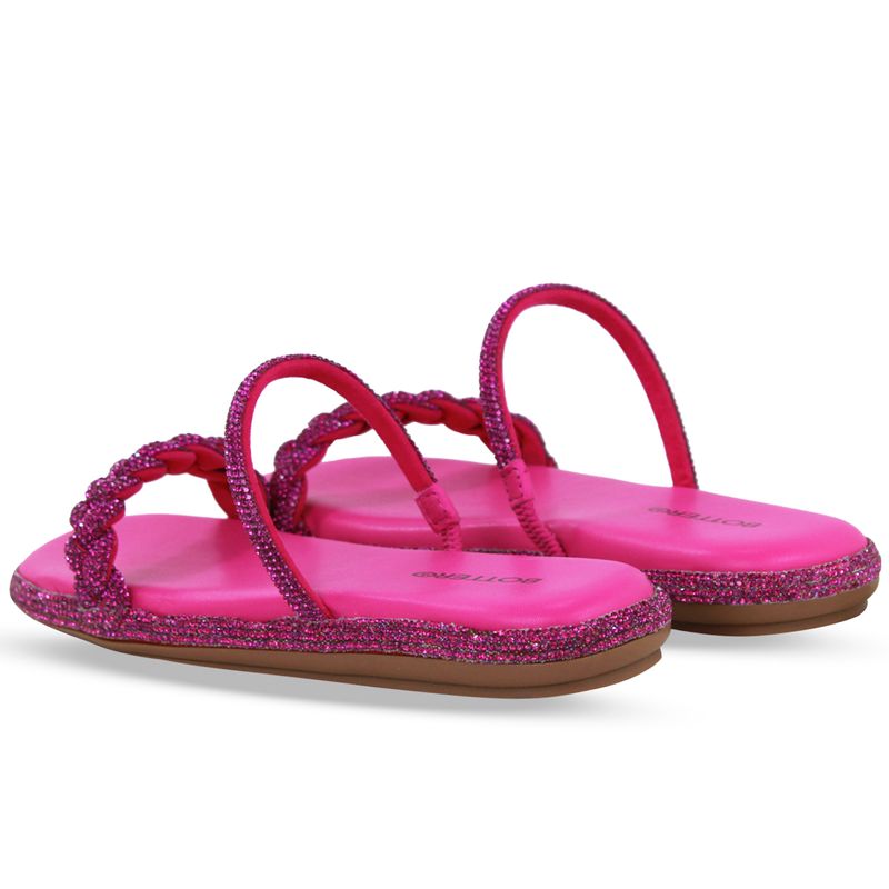 Sandália rasteira com tira em couro summer burnish hot pink. De solado rasteiro com strass fucsia na lateral. Possui tira fina com elástico na lateral interna, facilitando o ajuste ao pé e tira com trança sobre o pé. Modelo lindo e cheio de charme.