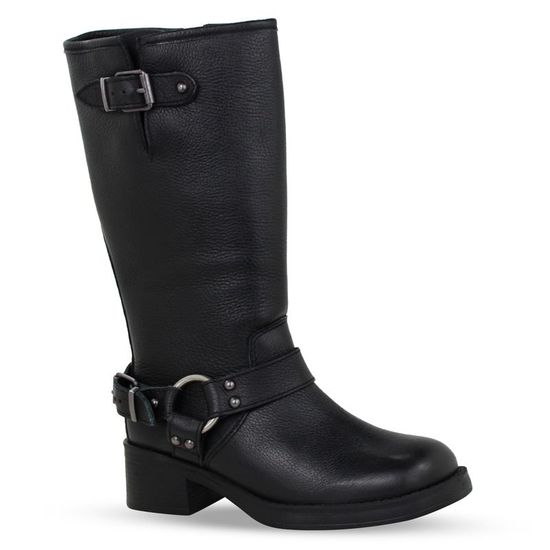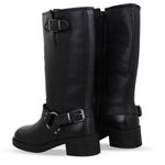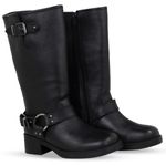 Bota Biker Cano Longo Couro Burnish Preto