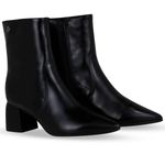 Bota cano baixo em couro atenas preto. De salto bloco alto e bico fino. Possui zíper na lateral interna.