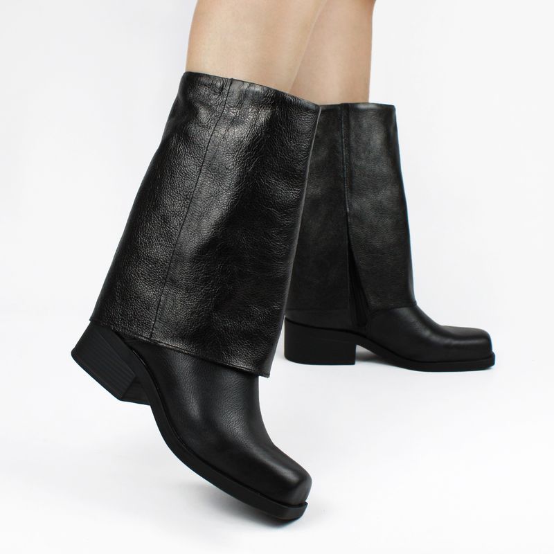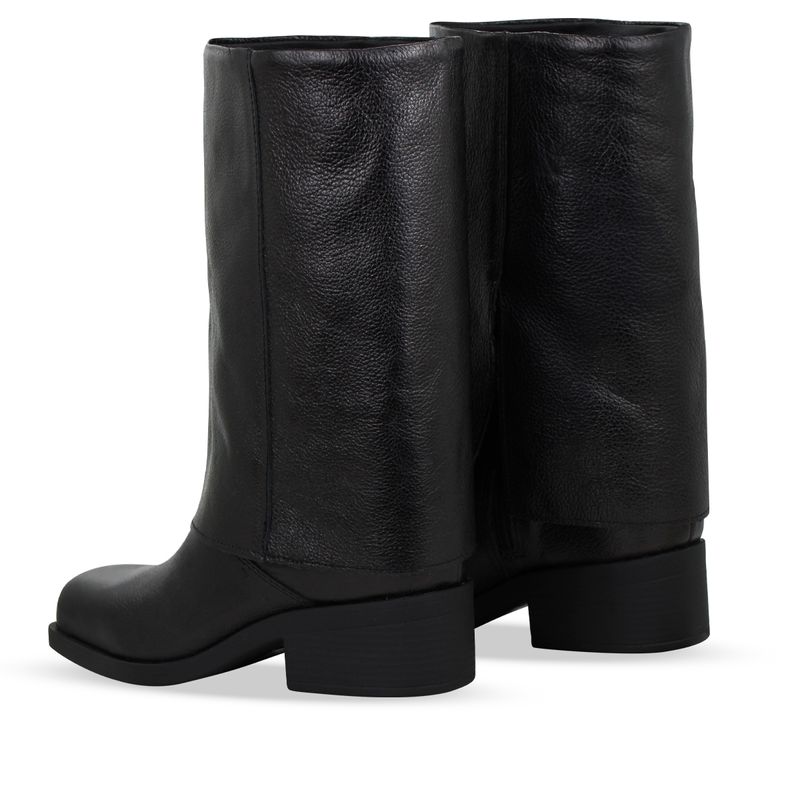 Bota Cano Baixo Couro Metalizado Roma Preto