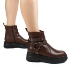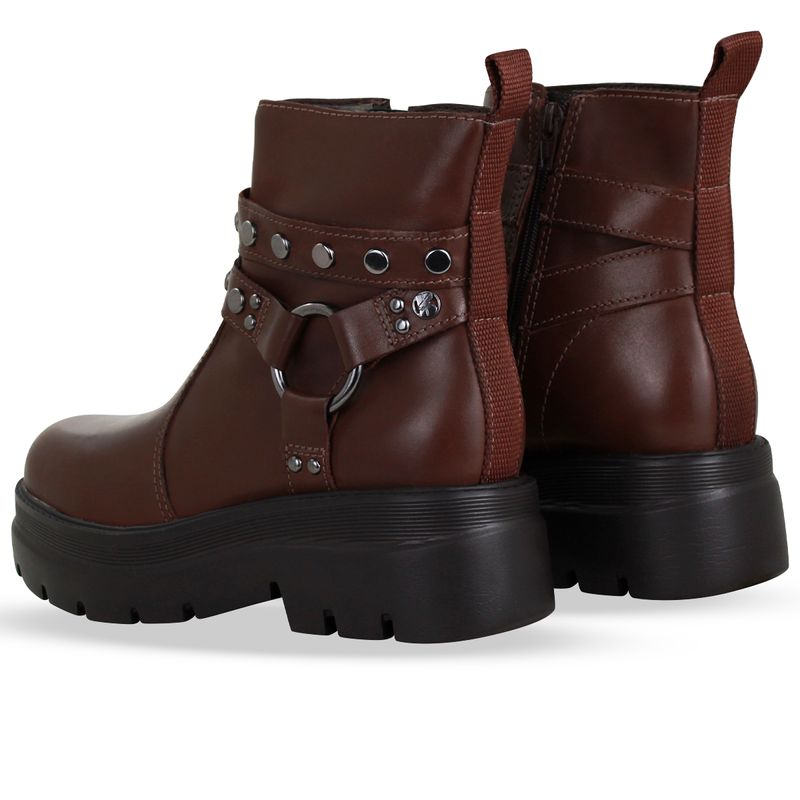 Bota coturno Bottero em couro atanado napoli wood. De solado tratorado produzido em eva injetado, super leve. Possui fechamento em zíper na lateral interna e detalhes em metal onix na lateral.