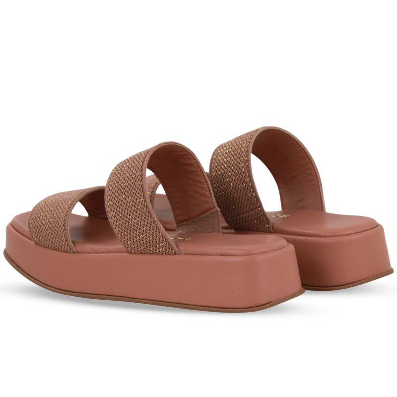 Sandália flatform amêndoa. De solado médio inteiro. Possui tiras em elástico sobre o pé.
