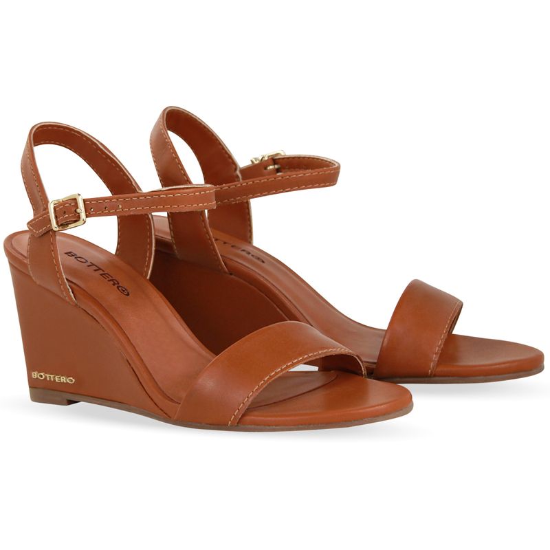 Sandália Anabela Couro Atanado Napoli Caramelo