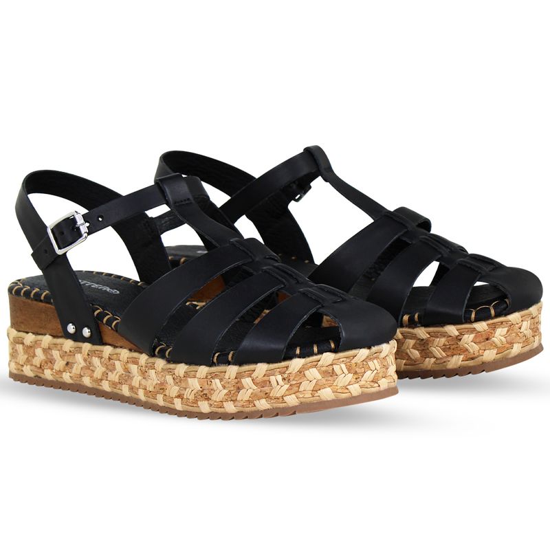 Sandália Anabela Couro Atanado Napoli Preto