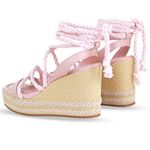 Sandália anabela em couro atanado napoli quartz rosa. De salto anabela alto, encapado em material natural. Possui traseiro aberto e corda que envolve o tornozelo, fazendo uma linda amarração.