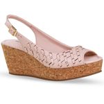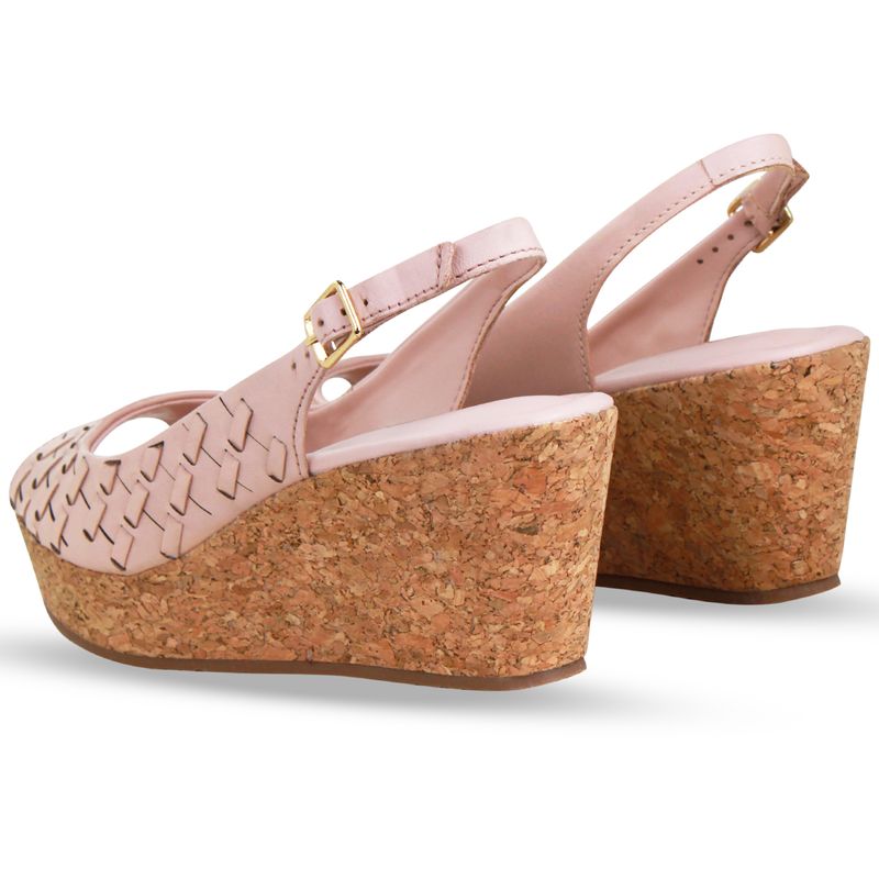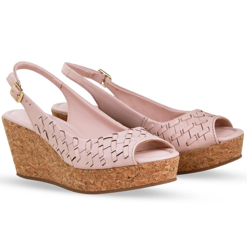 Sandália Anabela Couro Atanado Napoli Rosa Pastel