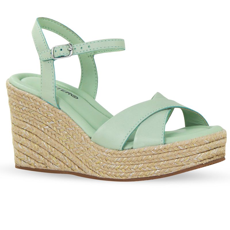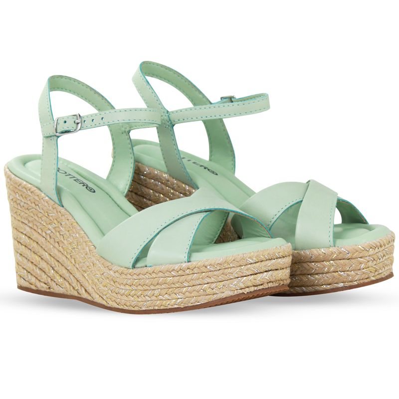 Sandália Anabela Couro Atanado Napoli Verde Pastel