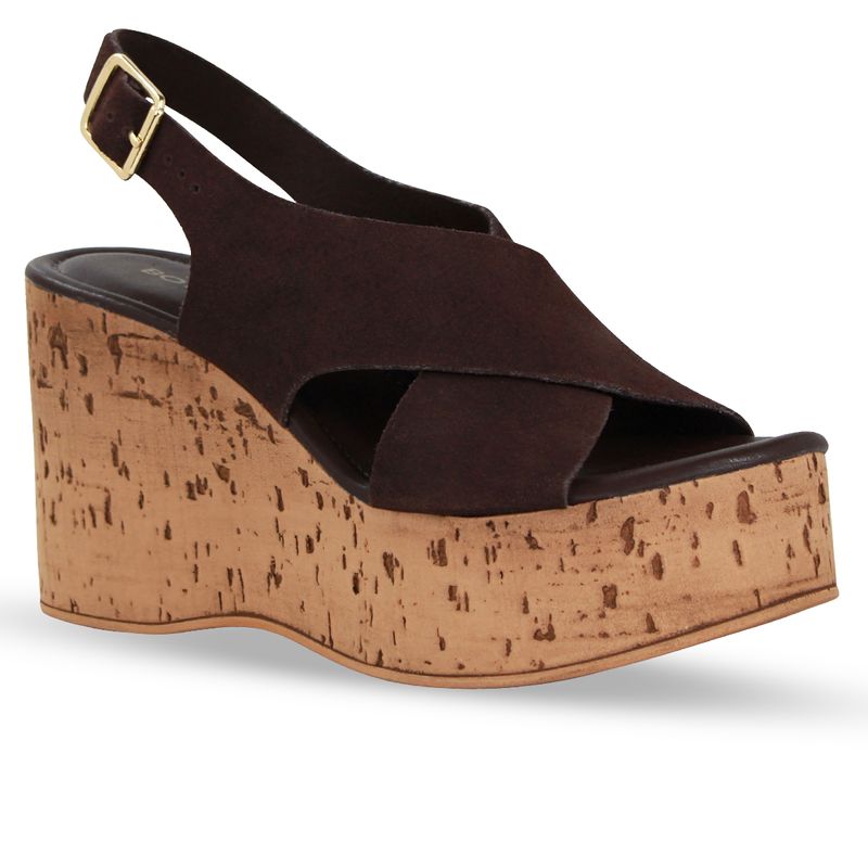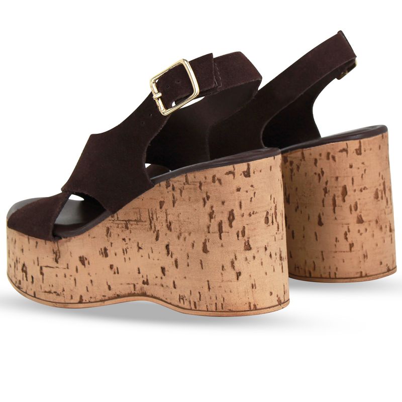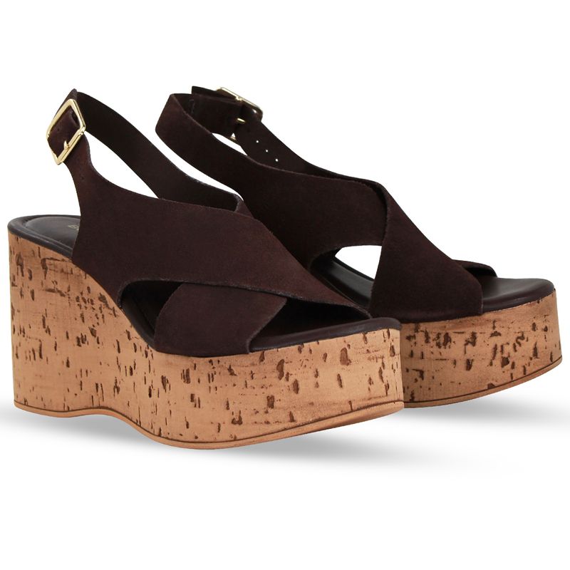 Sandália Anabela Couro Camurça Café
