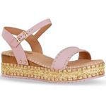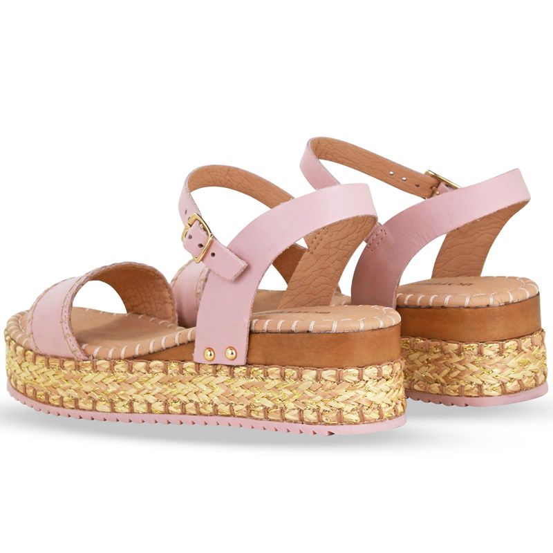 Sandália em couro atanado napoli quartz rosa. De salto flatform médio com detalhes em material natural e amadeirado. Possui traseiro aberto com tira ajustável e fivela de metal dourada. Gáspea com tira larga e detalhe em linha grossa nas bordas e palmilha do modelo.