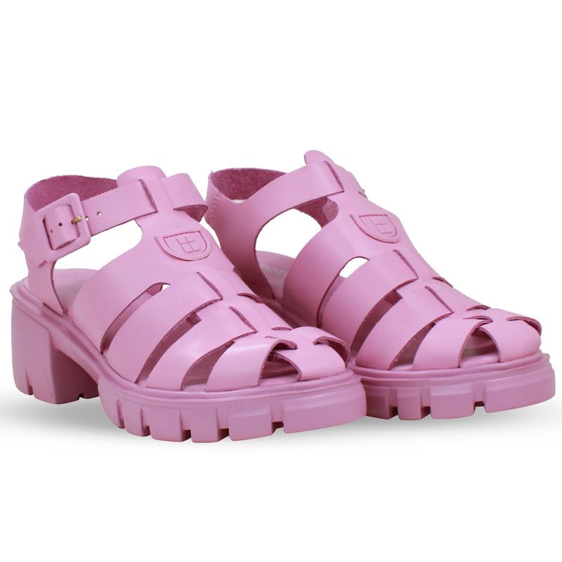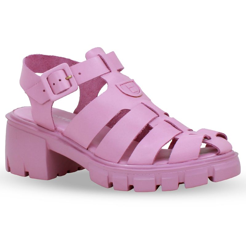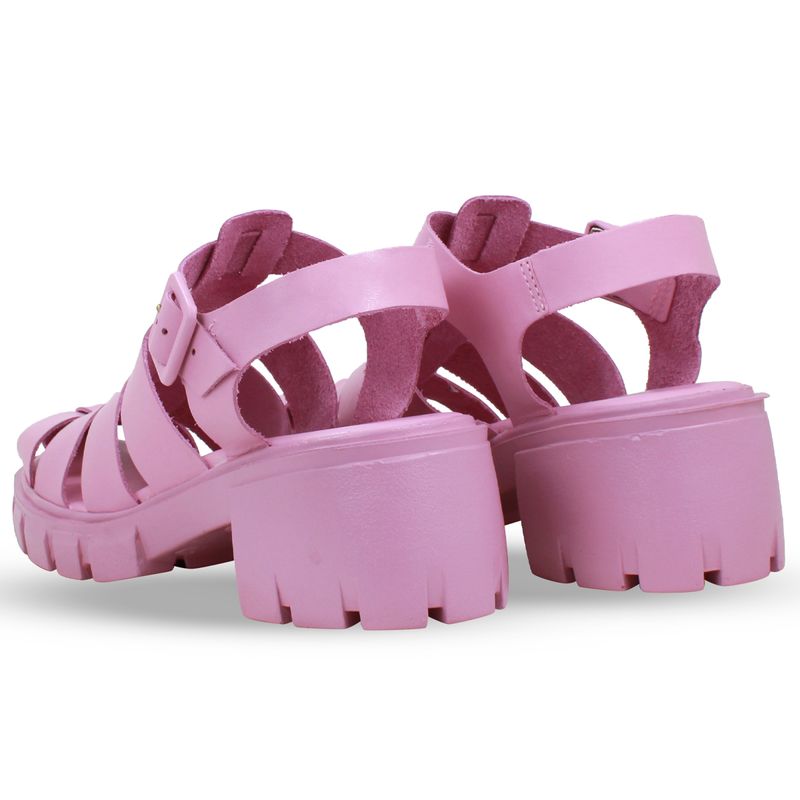 Sandália em couro atanado rosa. De solado tratorado alto. Detalhes em tiras largas, trazendo charme ao modelo que é tendência da estação. Fechamento em tira ajustável e fivela de metal encapada.
