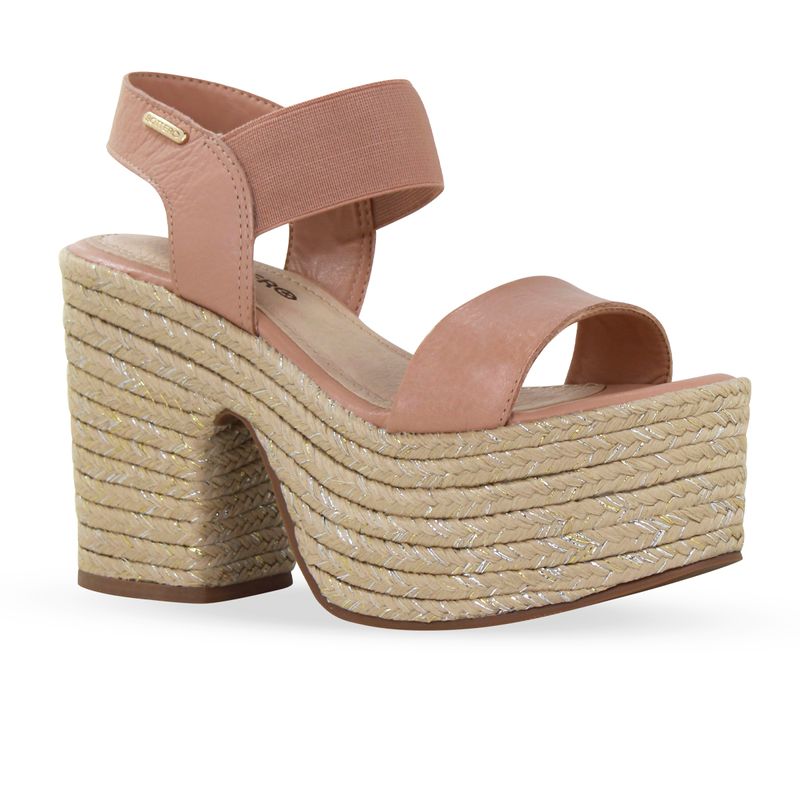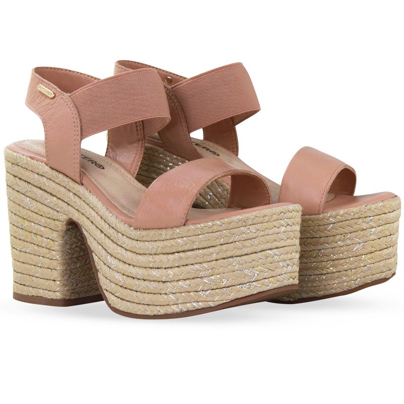 Sandália plataforma em couro summer burnish brown sugar. De salto plataforma alto encapado em cordas. Possui traseiro aberto com elástico que facilita o calce a ajuste ao pé. Gáspea com tira larga.