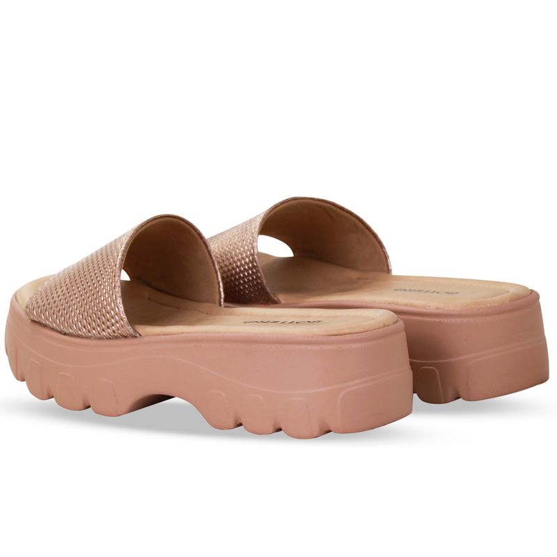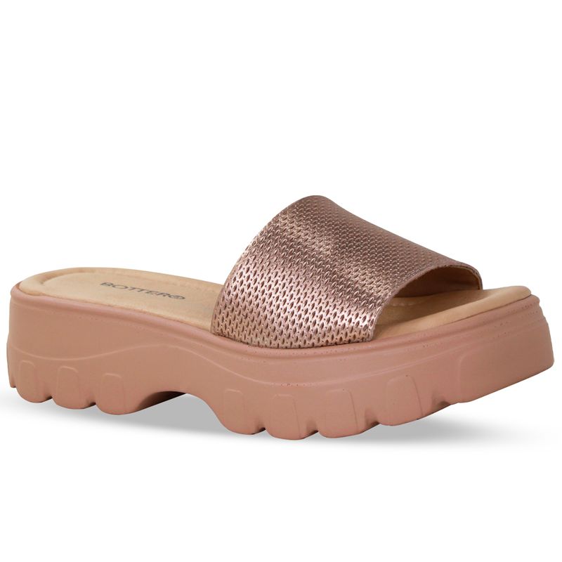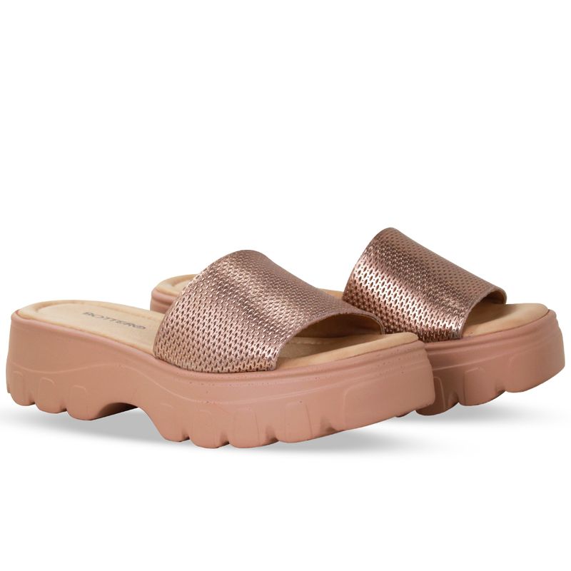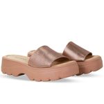 Sandália flatform em couro veneza metal ouro rosa. De solado médio com gáspea larga sobre o pé.