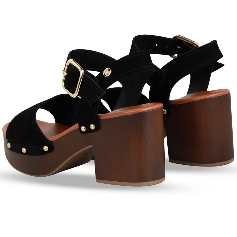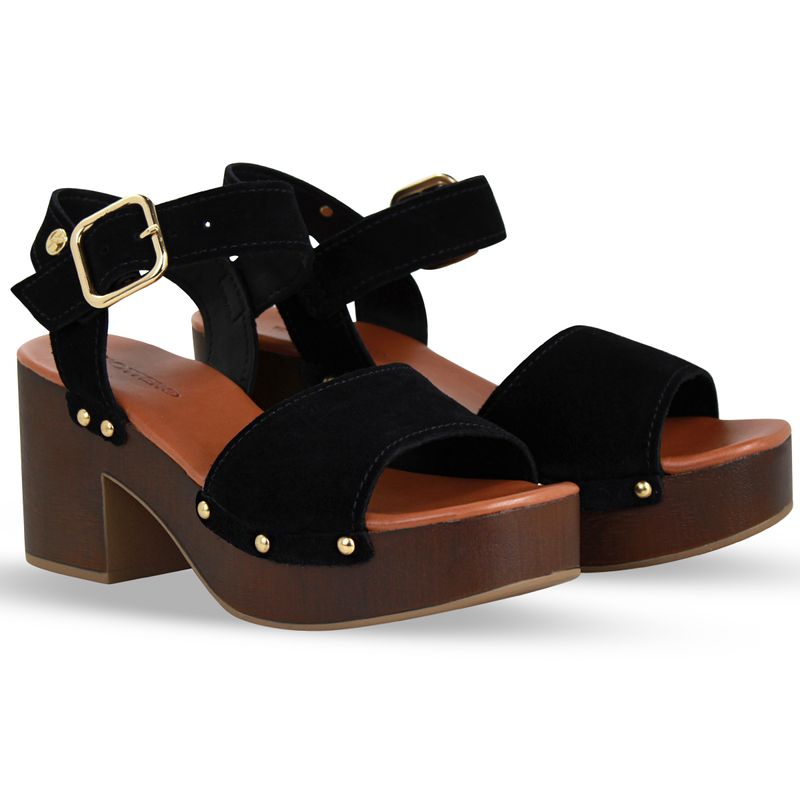 Sandália Plataforma Couro Camurça Preto