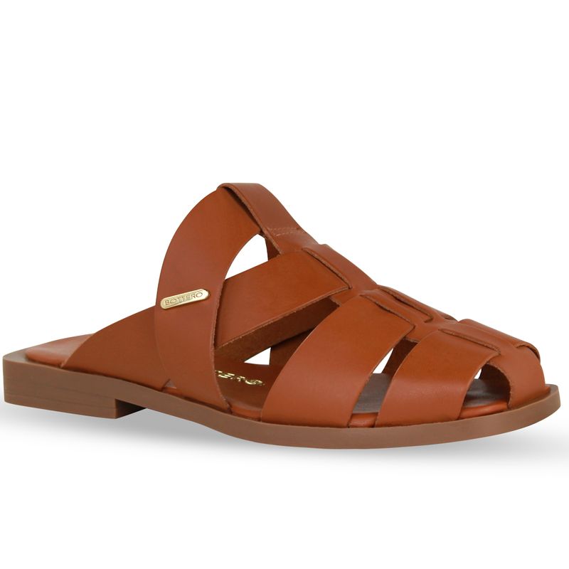 Sandália Rasteira Couro Atanado Caramelo