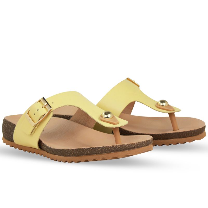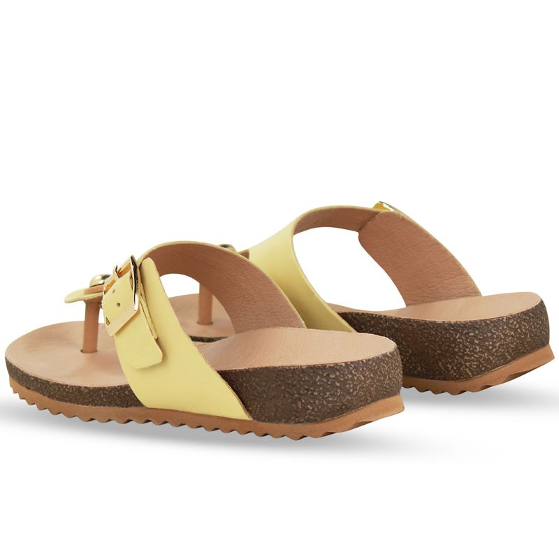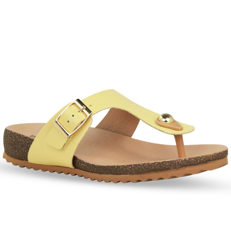 Sandália em couro atanado napoli amarelo manteiga. De solado rasteiro confortável. Gáspea possui fivela e tira ajustável que possibilita ajustar, proporcionando maior conforto.