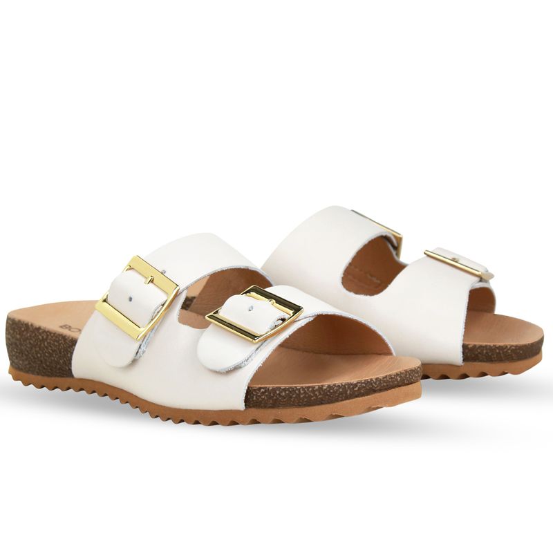 Sandália em couro atanado napoli off white. De solado rasteiro confortável. Gáspea possui fivelas e tiras ajustáveis que possibilitam ajustar, proporcionando maior conforto.