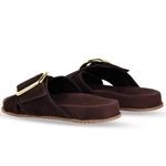 Sandália Rasteira Couro Camurça Café