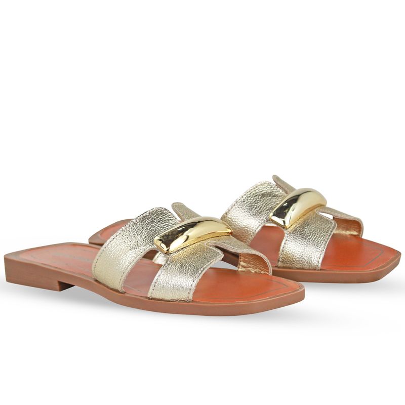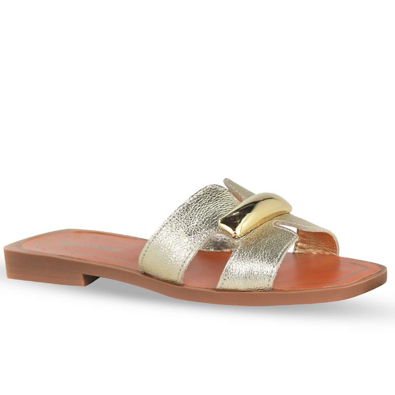Sandália Rasteira Couro Metalizado Roma Dourado