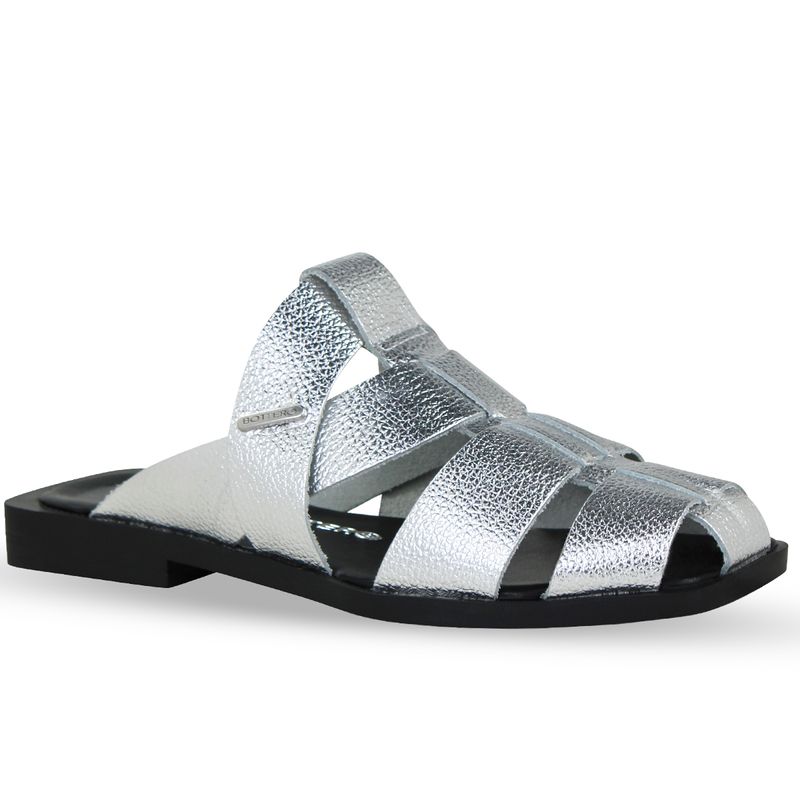 Sandália Rasteira Couro Metalizado Roma Prata