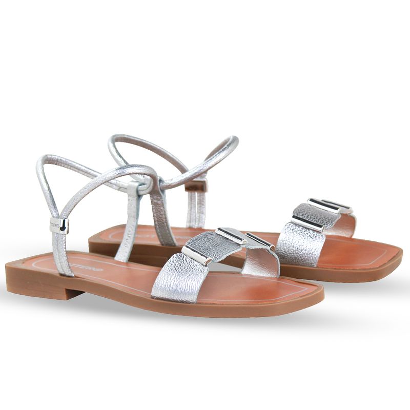 Sandália Rasteira Couro Metalizado Roma Prata