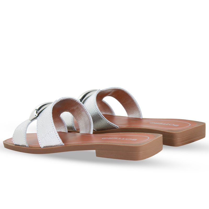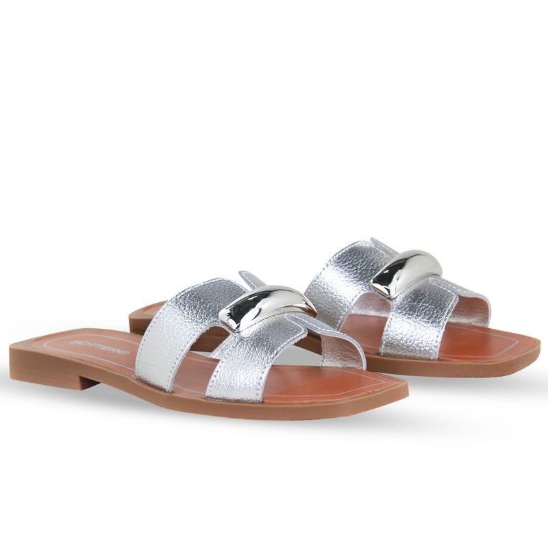 Sandália Rasteira Couro Metalizado Roma Prata