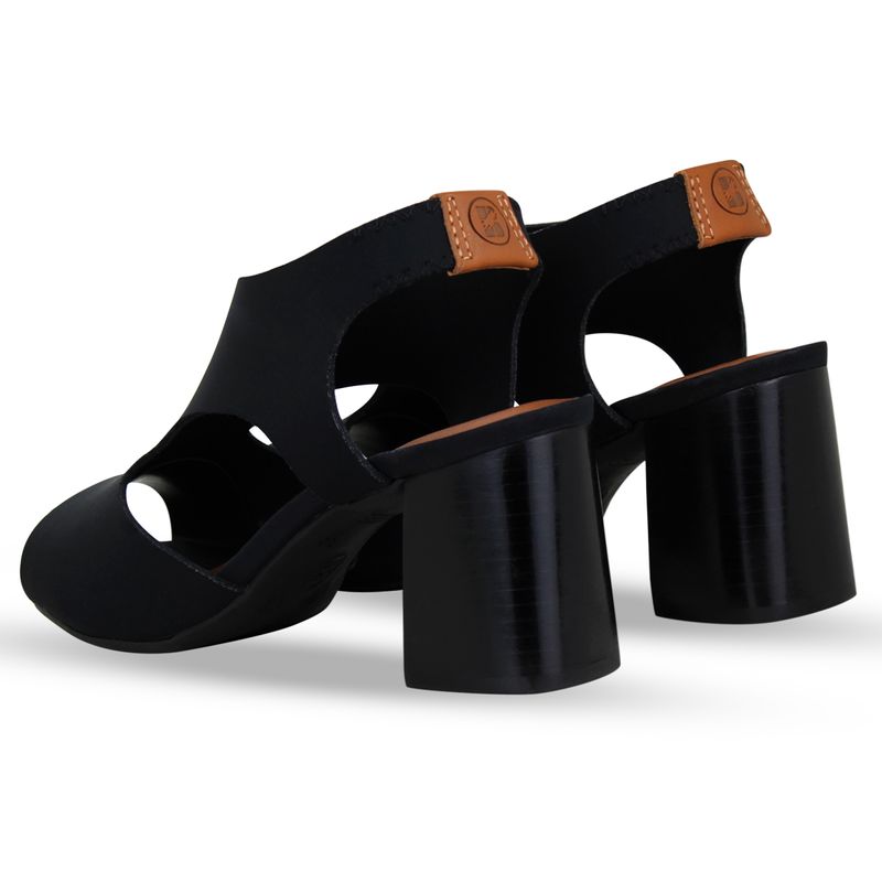 Sandália em tecido lycra preto, que possibilita total ajuste ao calçar. De salto bloco alto, possui aberturas na gáspea e nos dedos. Feita para conectar-se com oque realmente importa, você.