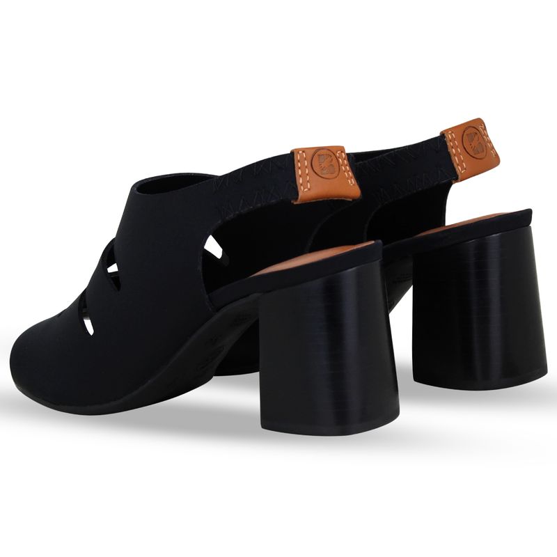 Sandália em tecido lycra preto, que possibilita total ajuste ao calçar. De salto bloco alto, possui aberturas na gáspea e nos dedos. Feita para conectar-se com oque realmente importa, você.