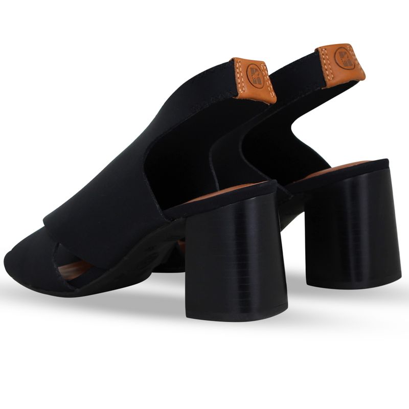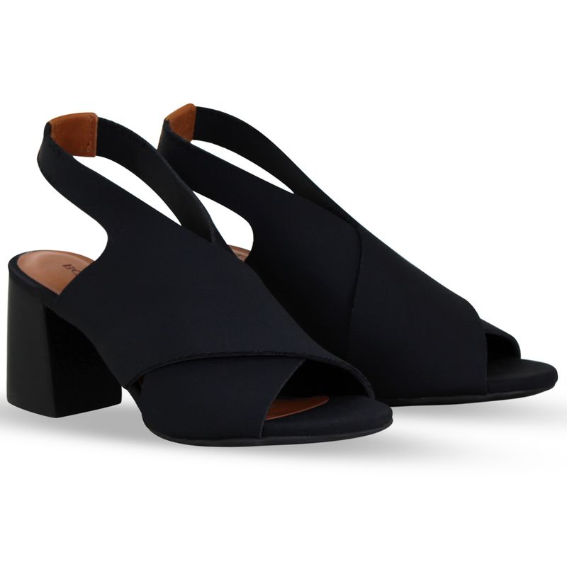 Sandália em tecido lycra preto, que possibilita total ajuste ao calçar. De salto bloco alto, possui gáspea inteira transpassada. Feita para conectar-se com oque realmente importa, você.