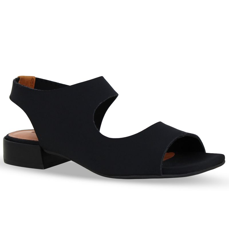 Sandália em tecido lycra preto, que possibilita total ajuste ao calçar. De salto bloco baixo, possui gáspea inteira. Feita para conectar-se com oque realmente importa, você.