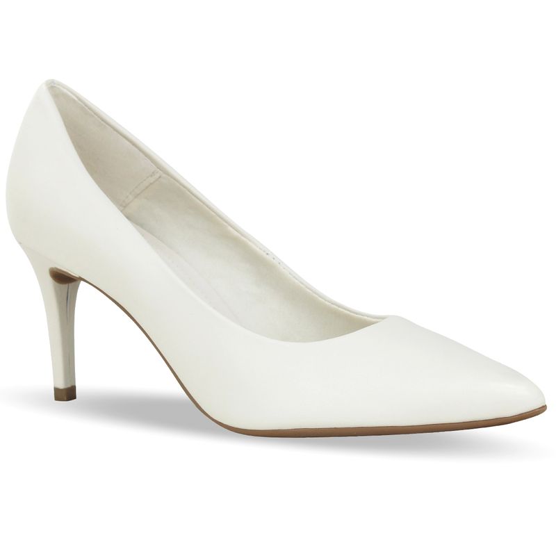 Sapato scarpin em couro atanado napoli off white. De salto alto fino e bico fino.