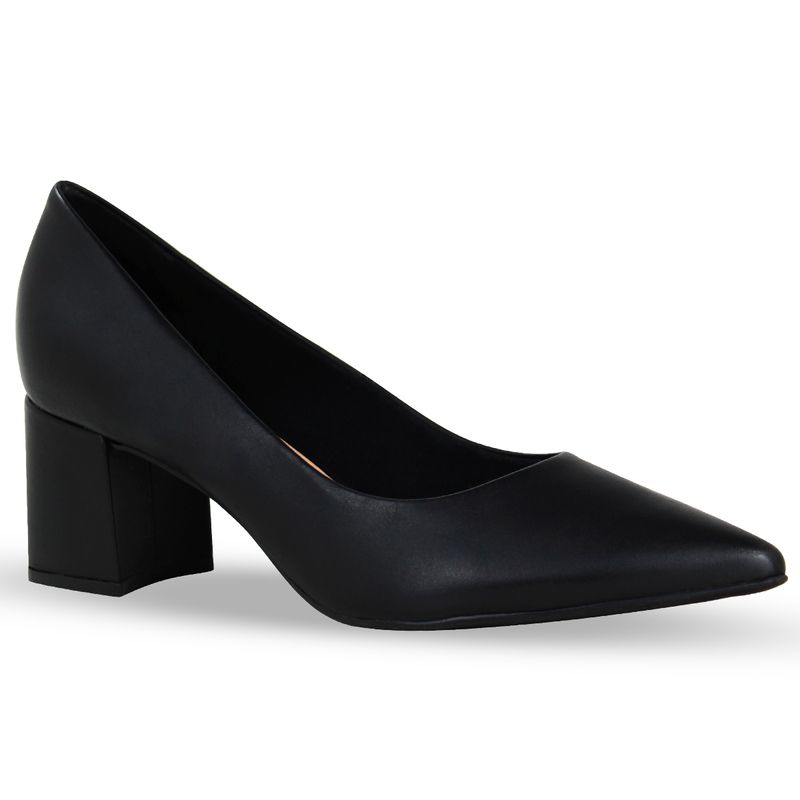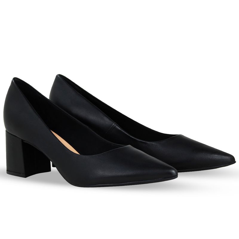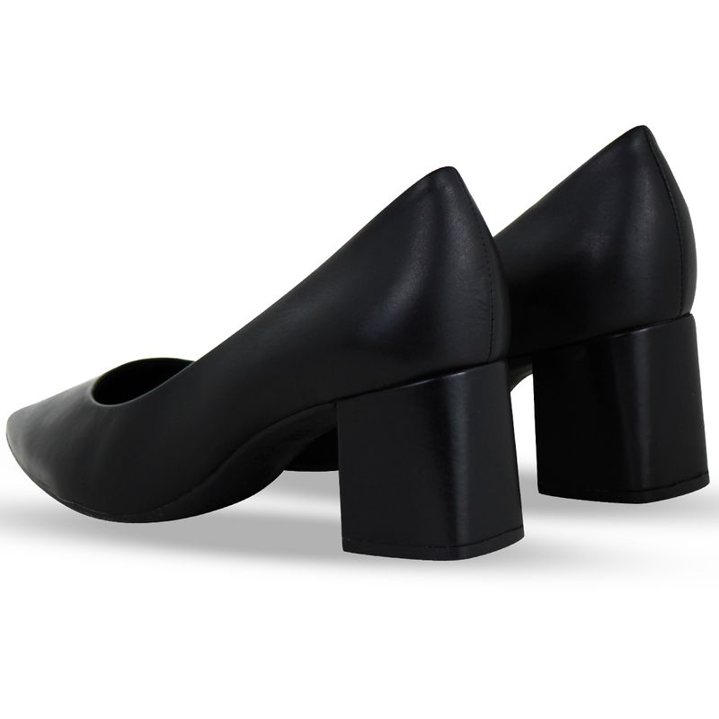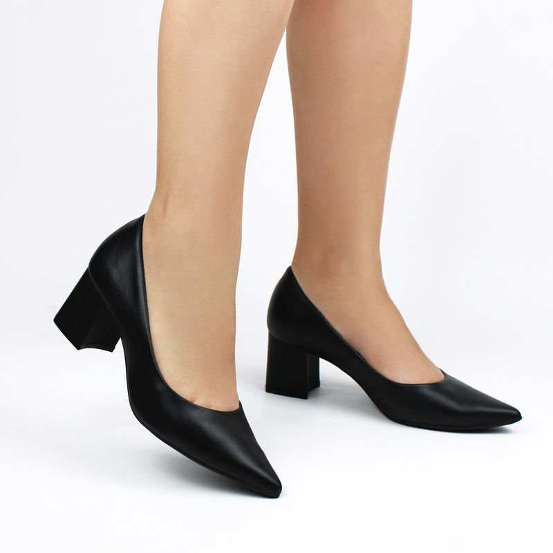 Sapato scarpin em couro atanado napoli preto. De salto bloco médio e bico fino.
