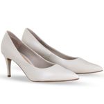 Sapato scarpin em couro attenas off white. De salto alto fino e bico fino.