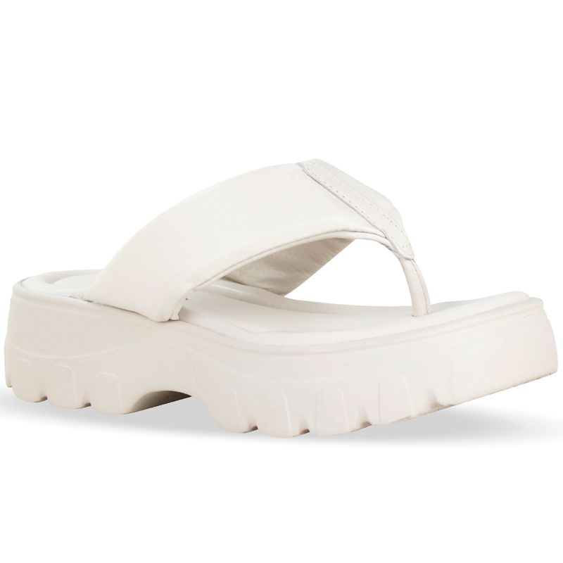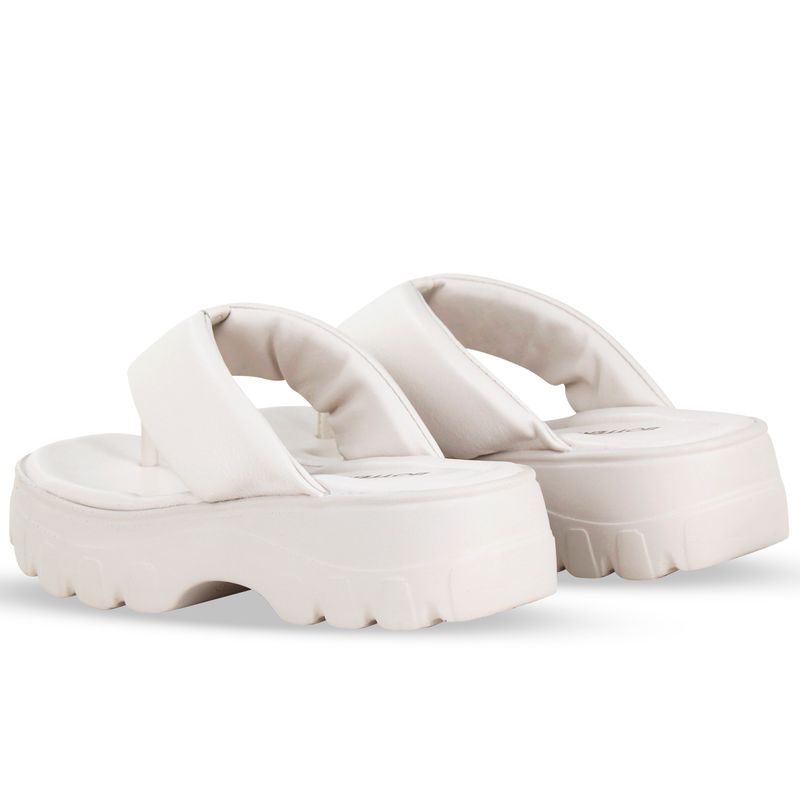Sandália flatform em couro burnish off white. De solado médio com palmilha macia. Possui tiras largas em couro burnish off white.