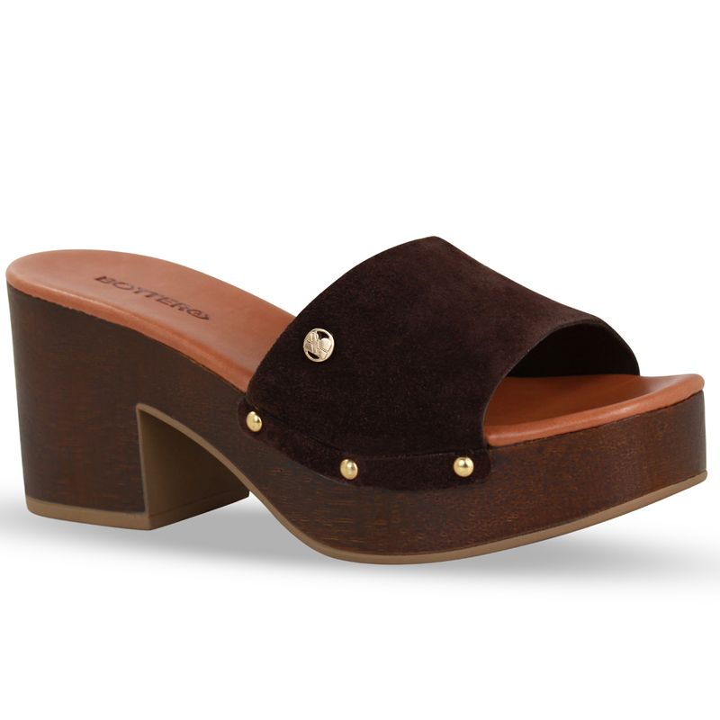 Tamanco Couro Camurça Café