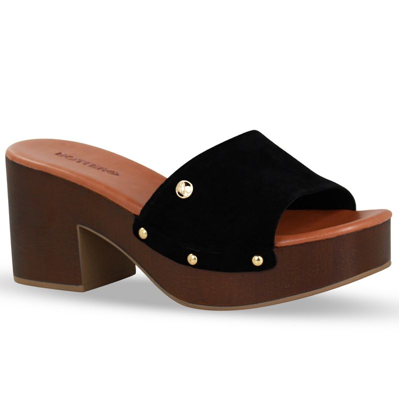 Tamanco Couro Camurça Preto