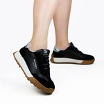 Tênis em couro camurça preto. De solado robusto na cor natural. Possui fechamento em cadarços e detalhe no traseiro em couro prata. Detalhe com o nome da marca na lateral.