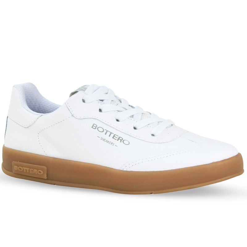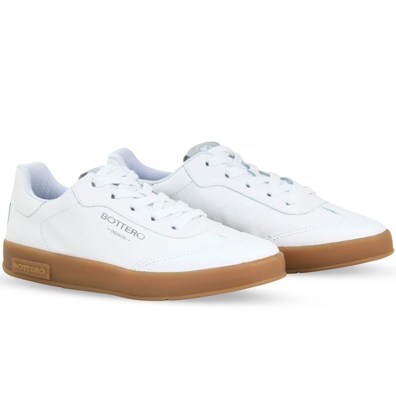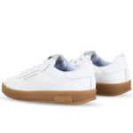 Tênis em couro napa branco. De solado rasteiro bege com fechamento em cadarços branco. Logo da marca na lateral externa do pé.