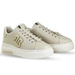 Tênis em couro napa marfim. De solado alto, super leve, macio e confortável. Possui detalhe com letra da marca na lateral e fechamento em elástico.