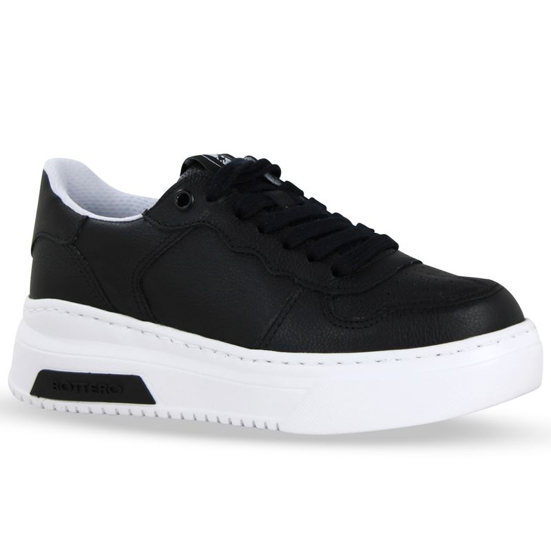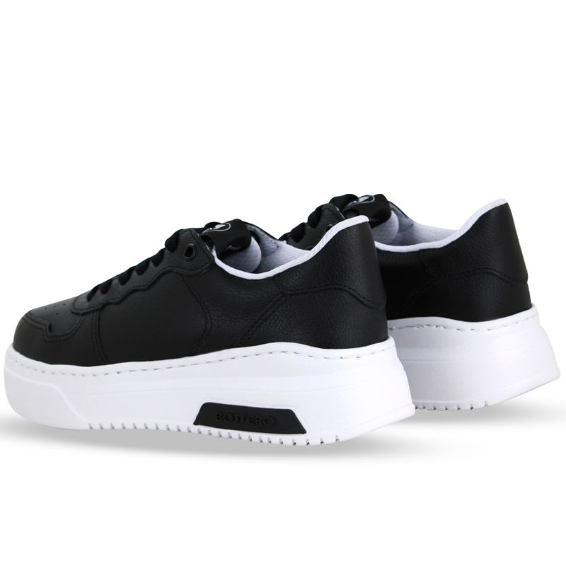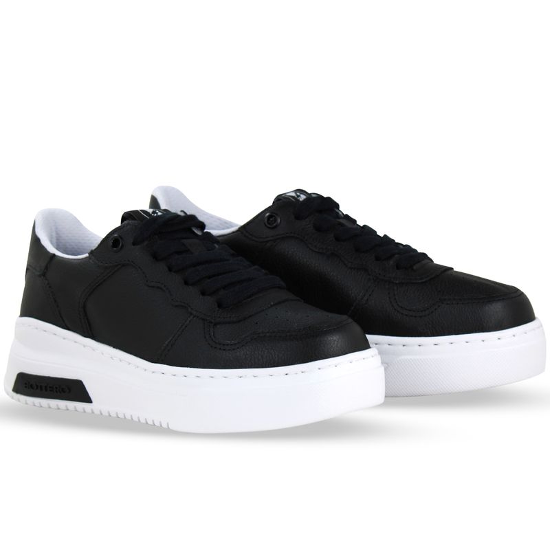 Tênis em couro napa preto. Possui solado branco super leve e macio e lindo detalhe com nome da marca. Fechamento em cadarços pretos.