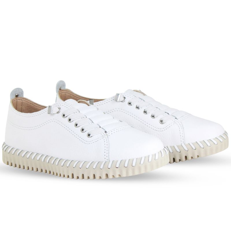Tênis twister em couro burnish branco. De solado confortável que só a linha twister tem. Gáspea em couro burnish brown sugar com elásticos, que possibitam fácil calce e ajuste ao pé.