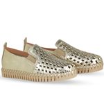 Tênis Twister em couro metalizado roma dourado. Possui solado super confortável que só a linha twister tem. Gáspea em material tramado com elástico nas laterais, facilitando o calce e trazendo charme ao modelo.